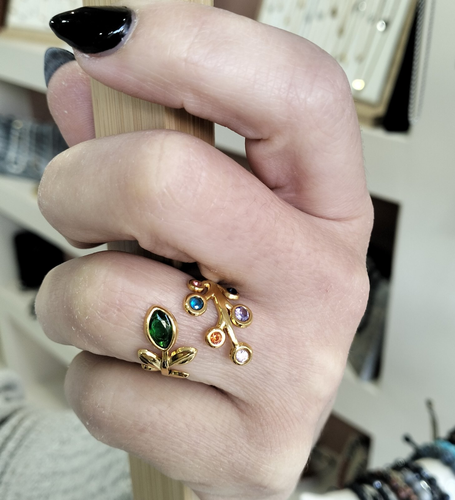 “Bloom Branch” Adjustable Stainless Steel Ring with Multicolor Stones