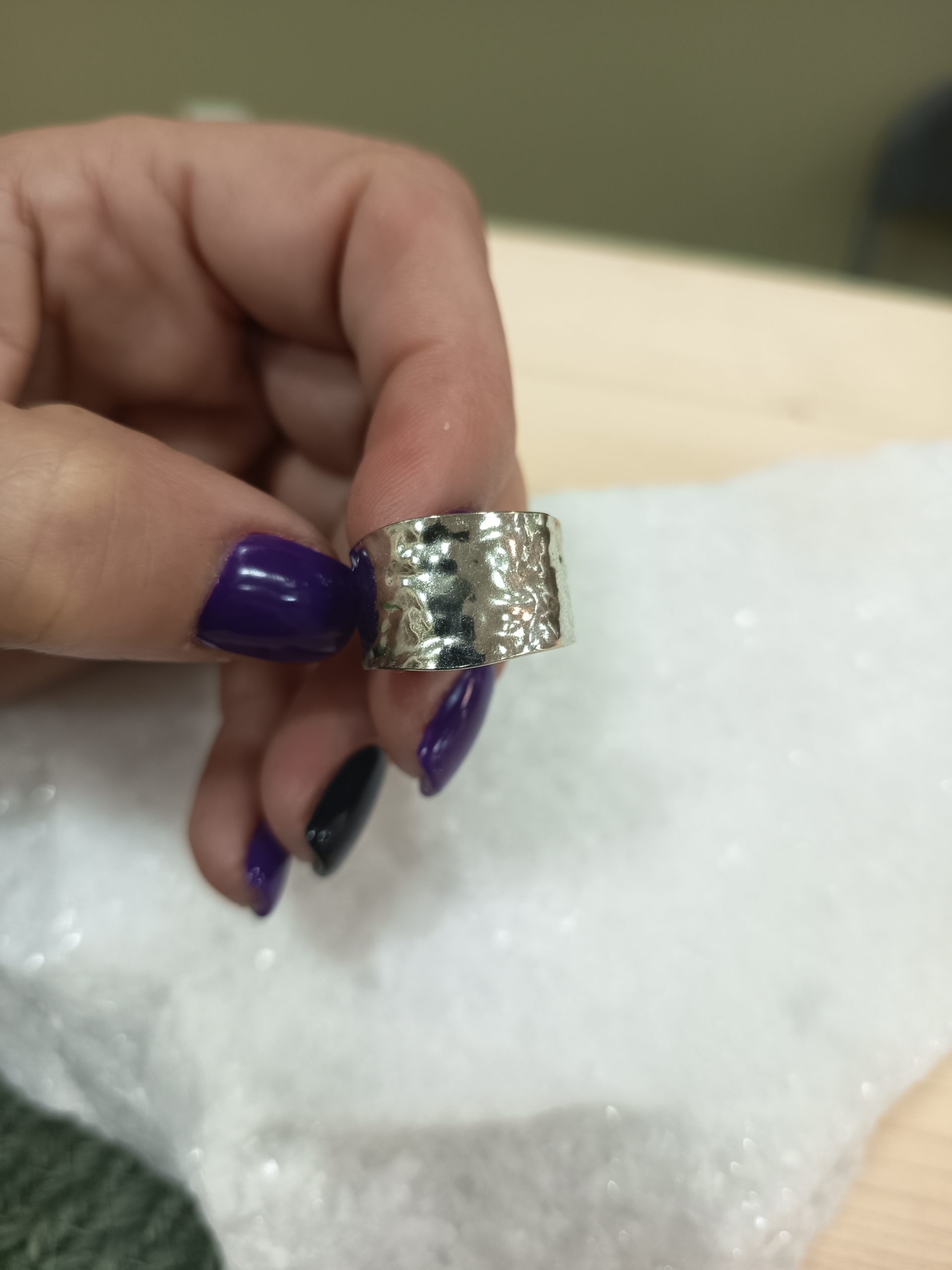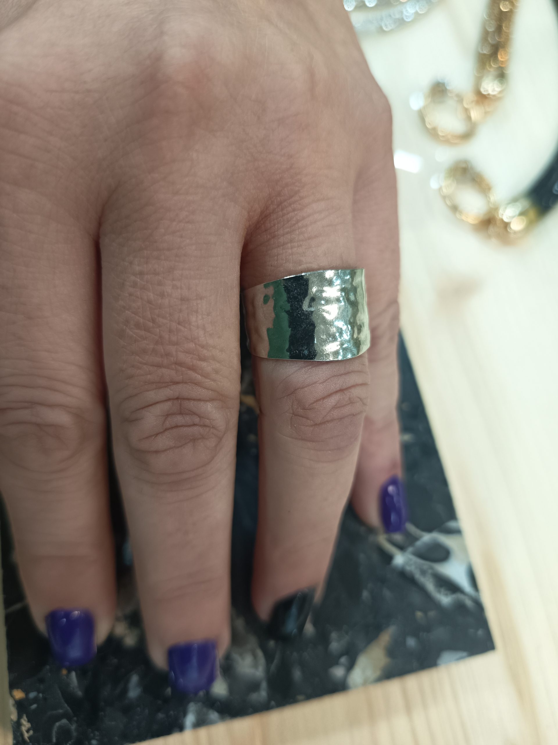 The “Hephaestus” stainless steel ring stands out for its hammered texture, which gives it a unique character and a subtle shine.