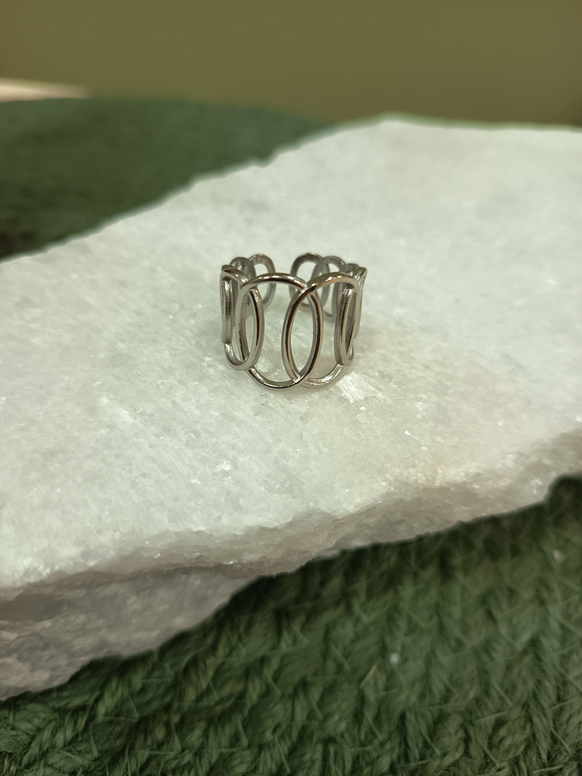 The Infinity Circles ring stands out for its modern design with interlocking circles, symbolizing continuity, harmony, and balance. Crafted from high-quality stainless steel, it offers long-lasting durability and a comfortable fit.