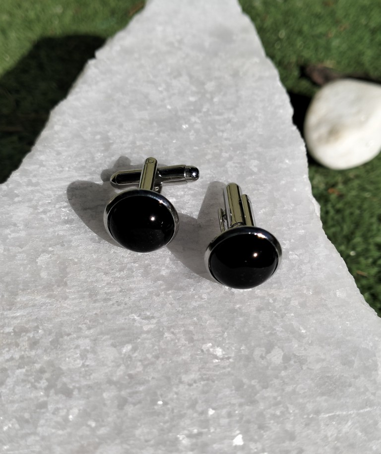 The onyx cufflinks offer a refined and timeless look. The deep black stone adds intensity and character. At the same time, the smooth surface creates a clean and balanced finish.