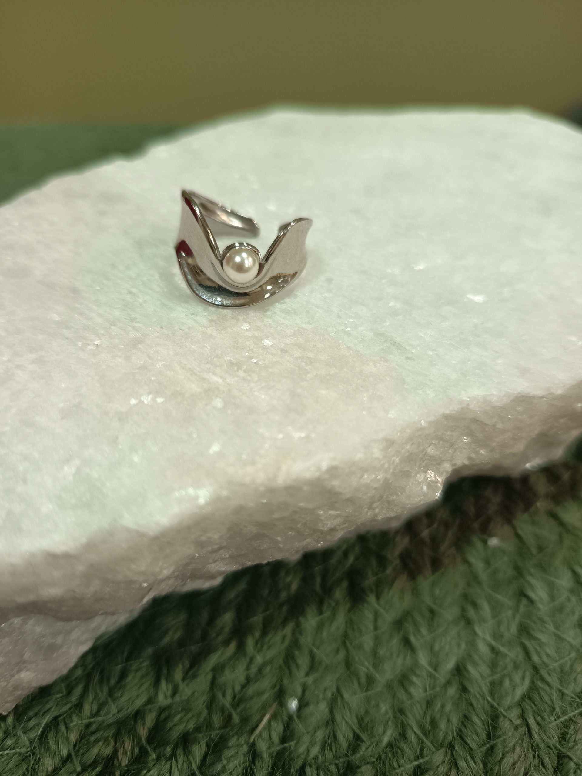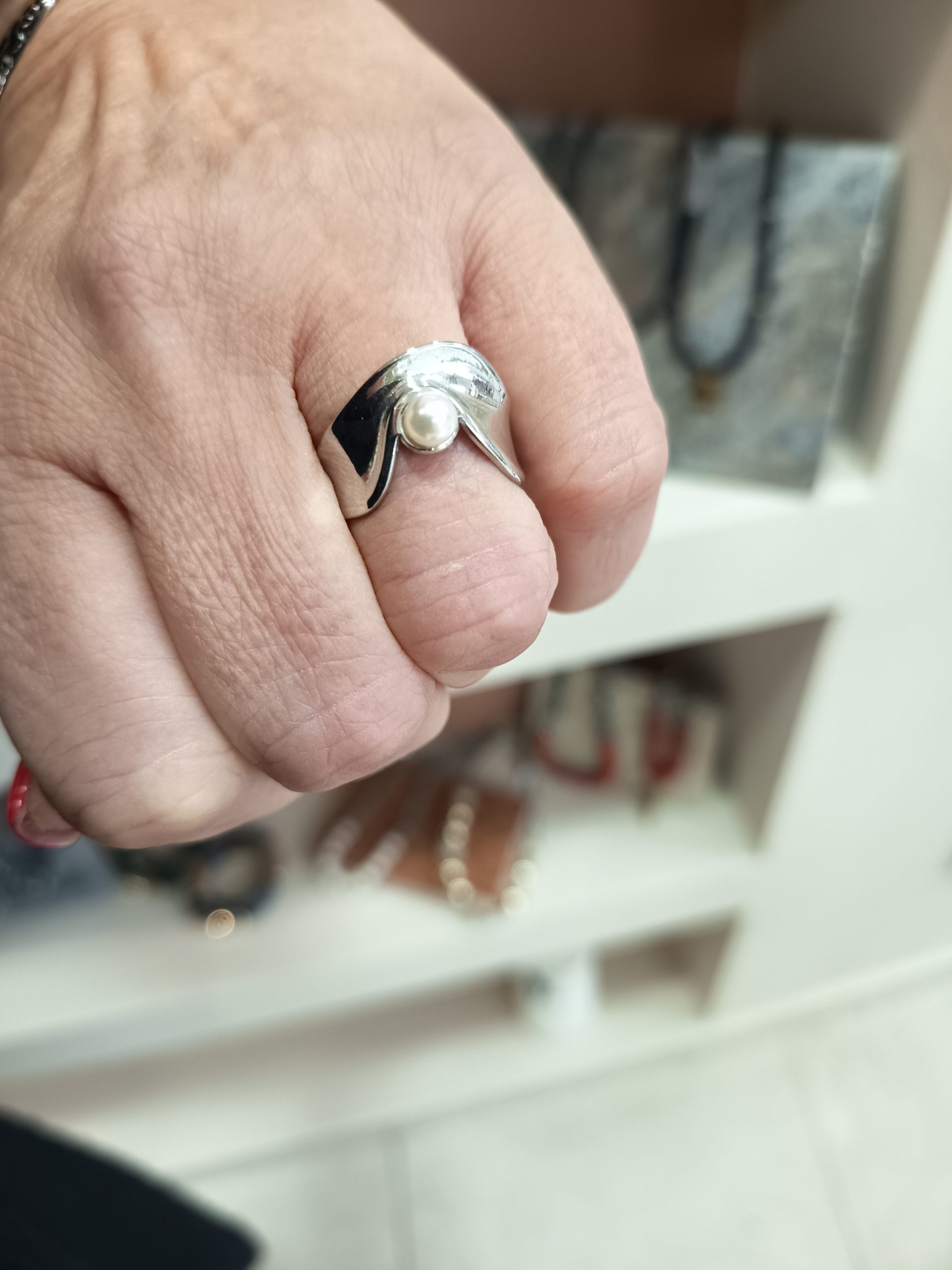 Το δαχτυλίδι “Pearla Wave” συνδυάζει τη διαχρονική κομψότητα της πέρλας με έναν σύγχρονο, καλλιτεχνικό σχεδιασμό. Κατασκευασμένο από ανοξείδωτο ατσάλι σε ασημί απόχρωση, αγκαλιάζει το δάχτυλο με απαλή καμπύλη μορφή, δημιουργώντας ένα elegant αλλά και μοντέρνο αποτέλεσμα.