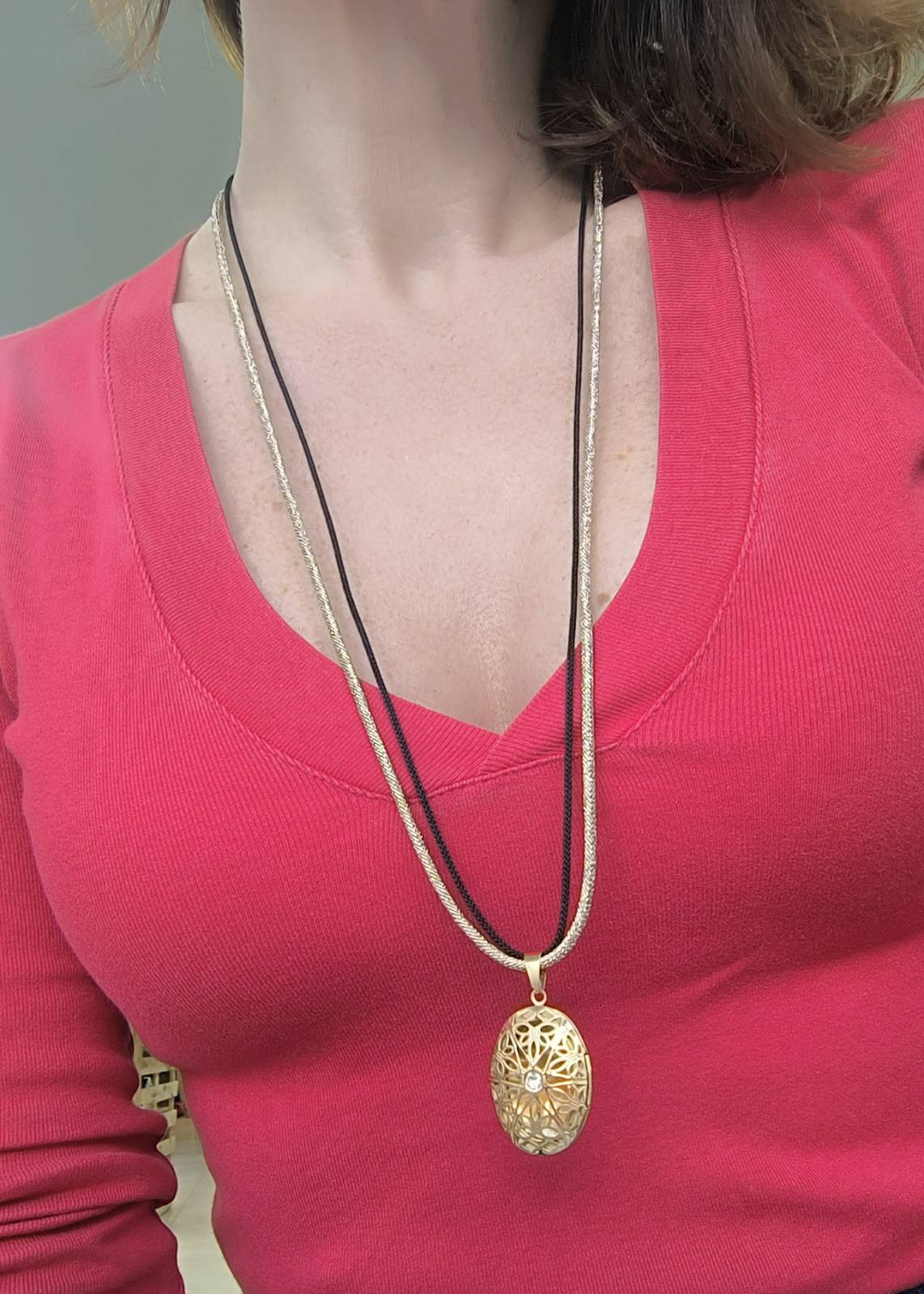 Μενταγιόν “Noctura” – Χρυσό Φιλιγκράν με Διπλό Κορδόνι