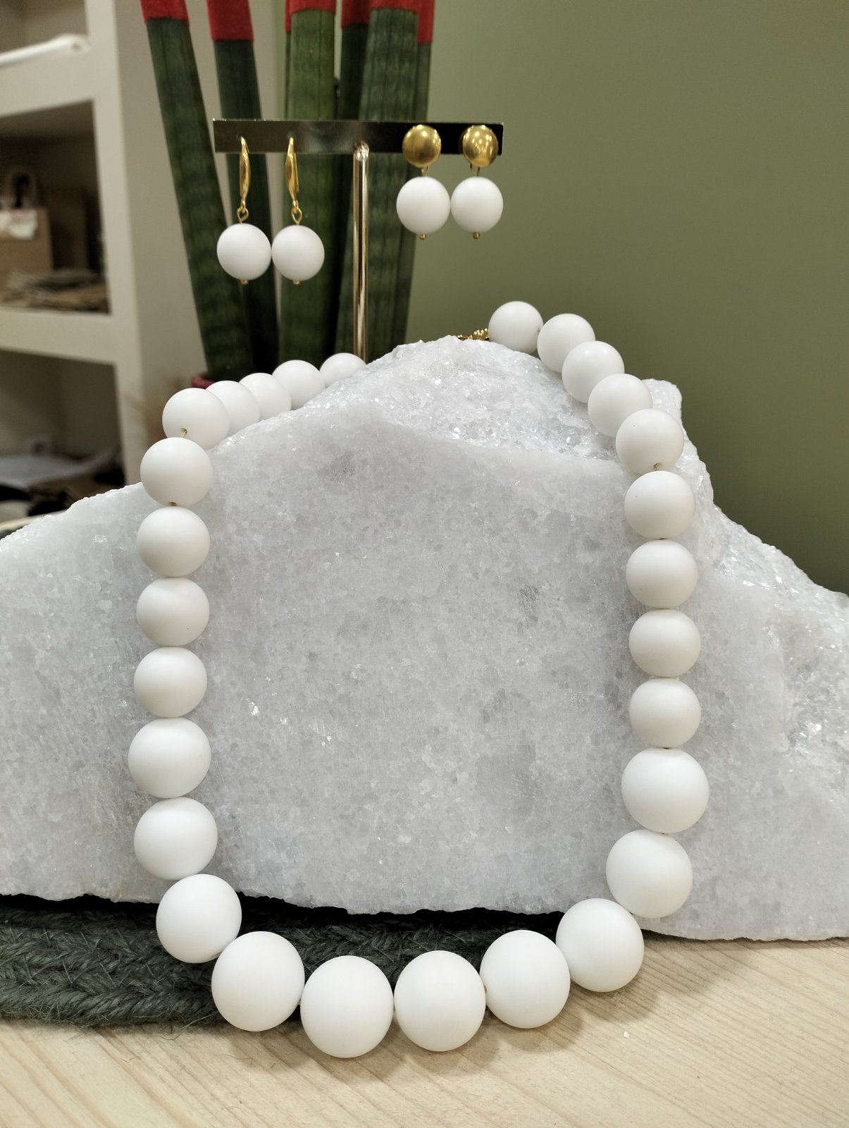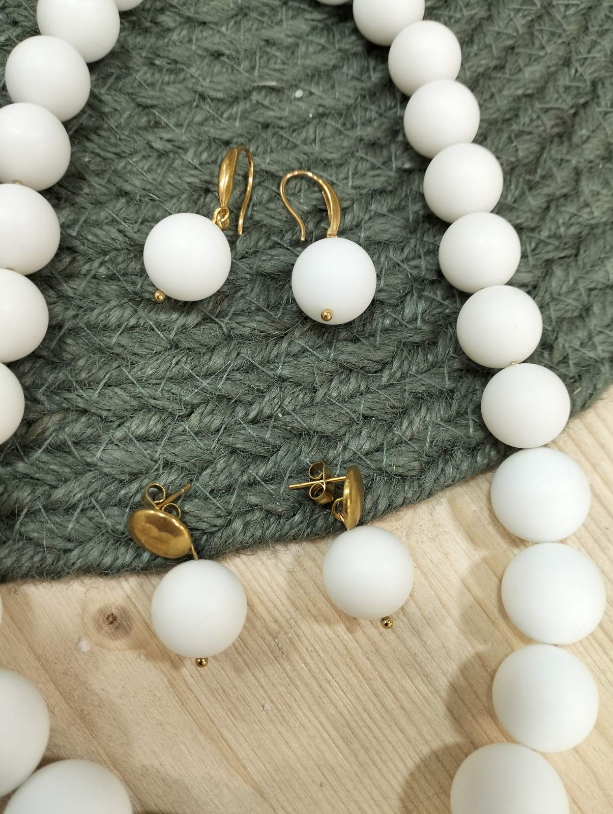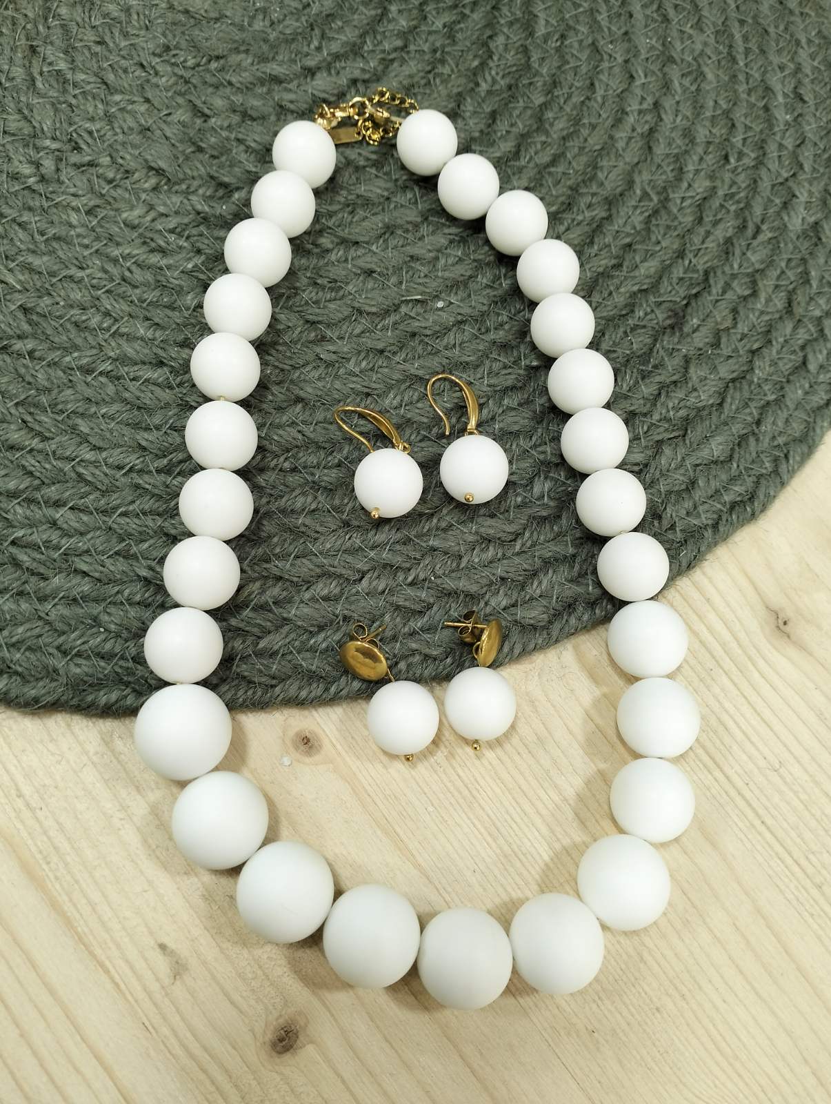 Το σετ κοσμημάτων Luna Porcelain είναι μια ωδή στην απλότητα και τη διαχρονική κομψότητα. Αποτελείται από χειροποίητες πορσελάνινες χάντρες σε καθαρό λευκό χρώμα, δημιουργώντας ένα φίνο και φωτεινό αποτέλεσμα που ταιριάζει απόλυτα τόσο σε καθημερινές όσο και σε πιο επίσημες εμφανίσεις.