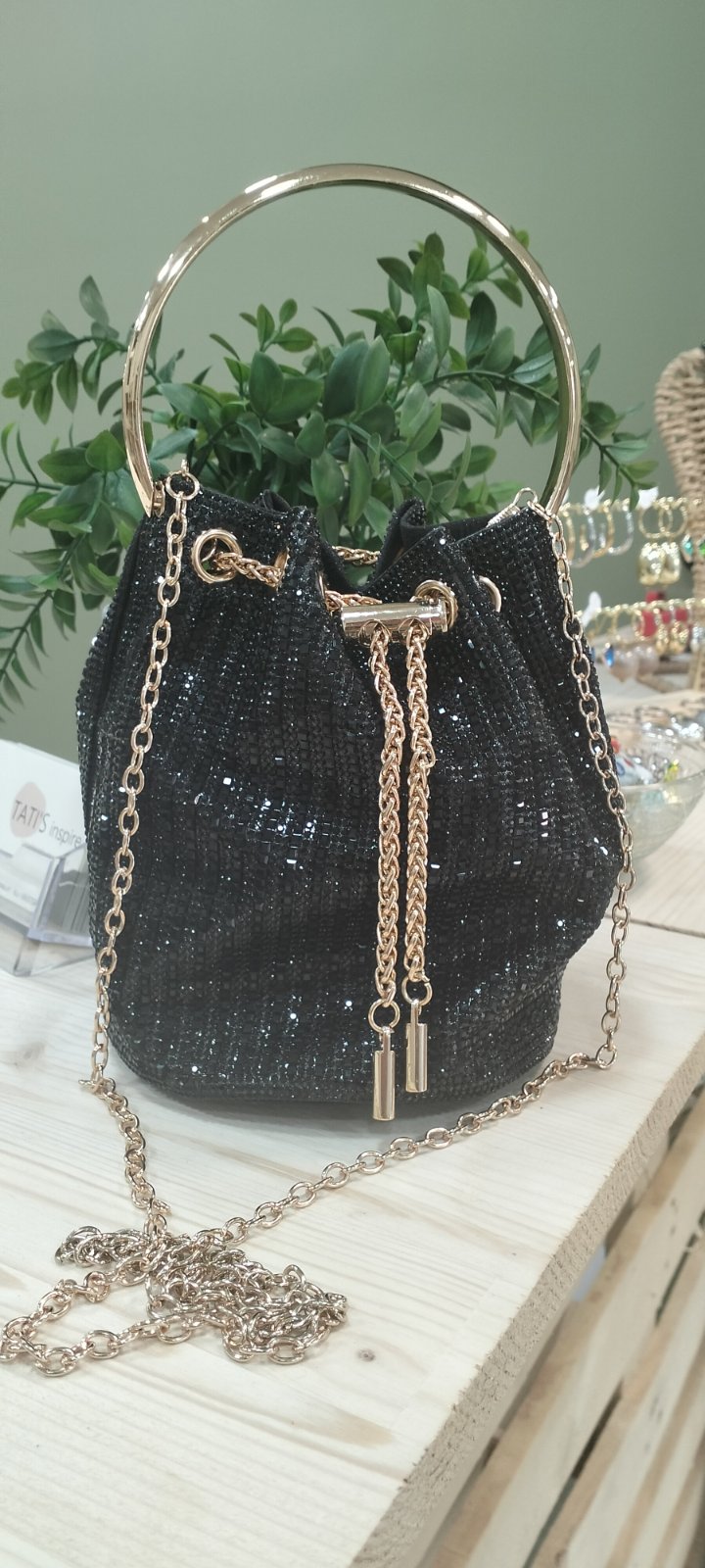 Η Midnight Sparkle είναι η απόλυτη βραδινή τσάντα που συνδυάζει λάμψη και διαχρονική κομψότητα. Κατασκευασμένη από στρας και κρύσταλλα σε βαθύ μαύρο χρώμα, προσφέρει μια πολυτελή εμφάνιση που ξεχωρίζει χωρίς υπερβολές.